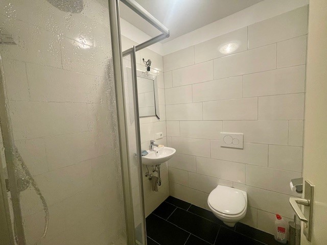 Im Erdgeschoss befinden sich ein WC mit Dusche sowie ein praktischer Wirtschaftsraum mit Waschmaschinenanschluss, der für Ordnung und Funktionalität sorgt.